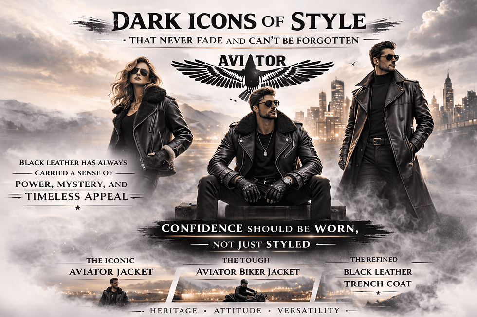 Leather remains a popular choice in fashion because it combines practicality, tradition, and personal style. With iconic designs such as the aviator jacket, the bold aviator biker jacket, and the refined black leather trench coat, modern leather fashion offers something powerful and personal. These pieces don’t lose their color or strength over time; they actually become more powerful, just like the style they stand for.
